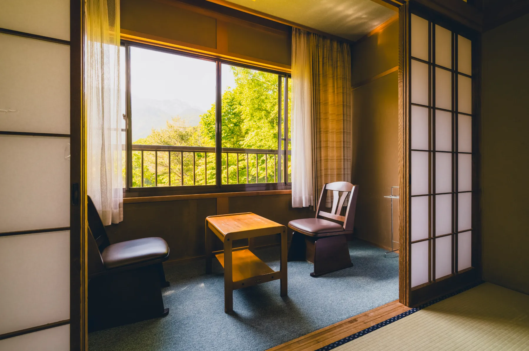 余計な装飾を削ぎ落とした、シンプルな純和室。 大人4名様でもゆったりと過ごせる広さで、湯上がりに浴衣でゴロリと横になる。聞こえてくるのは、窓の外を流れる川のせせらぎだけ。 何もしない贅沢な時間を、心ゆくまでお過ごしください。